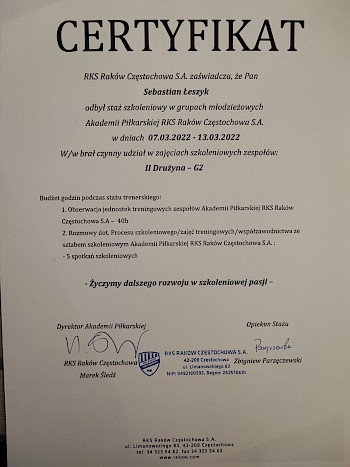 -staż w Akademii Raków Częstochowa